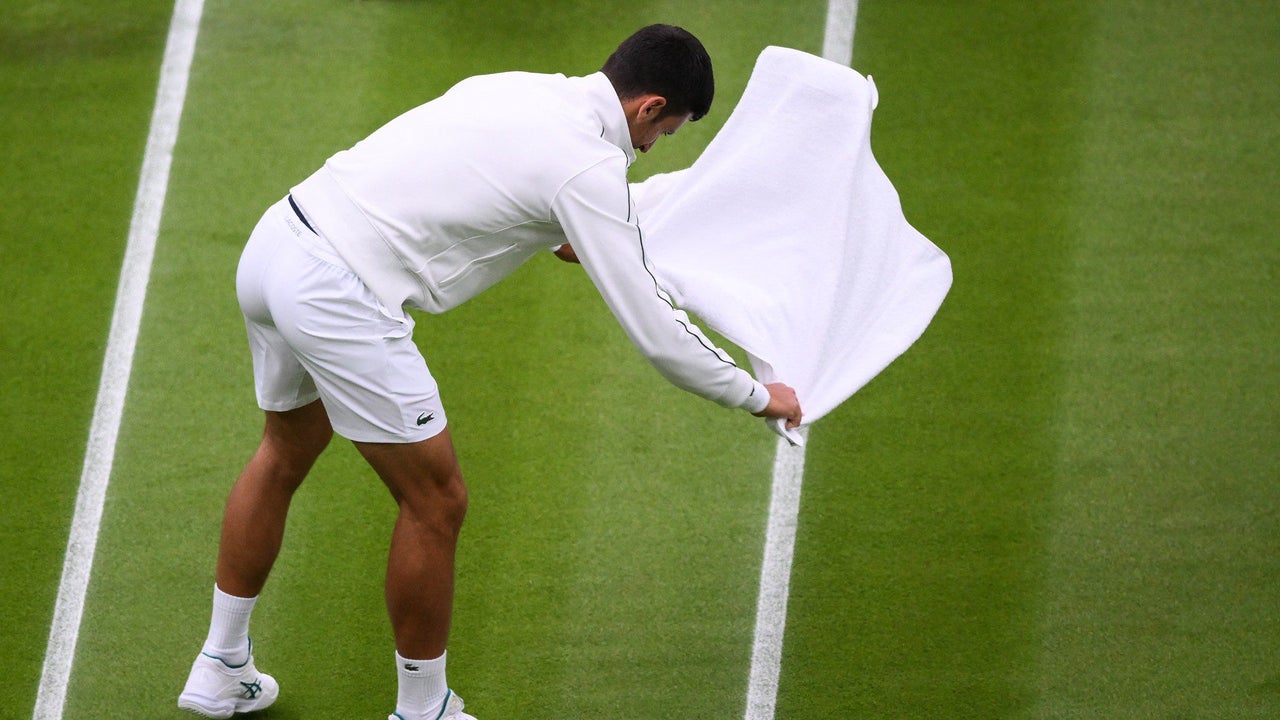 Así es punzado y pintado el pasto sobre el que se juega el campeonato de tenis de Wimbledon