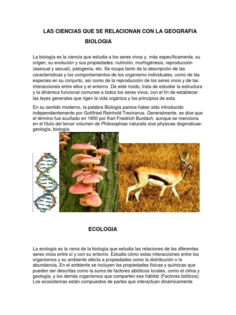 Las Ciencias Que Se Relacionan Con La Geografia PDF Geología Biología