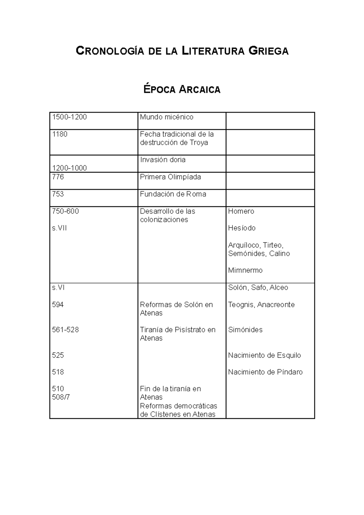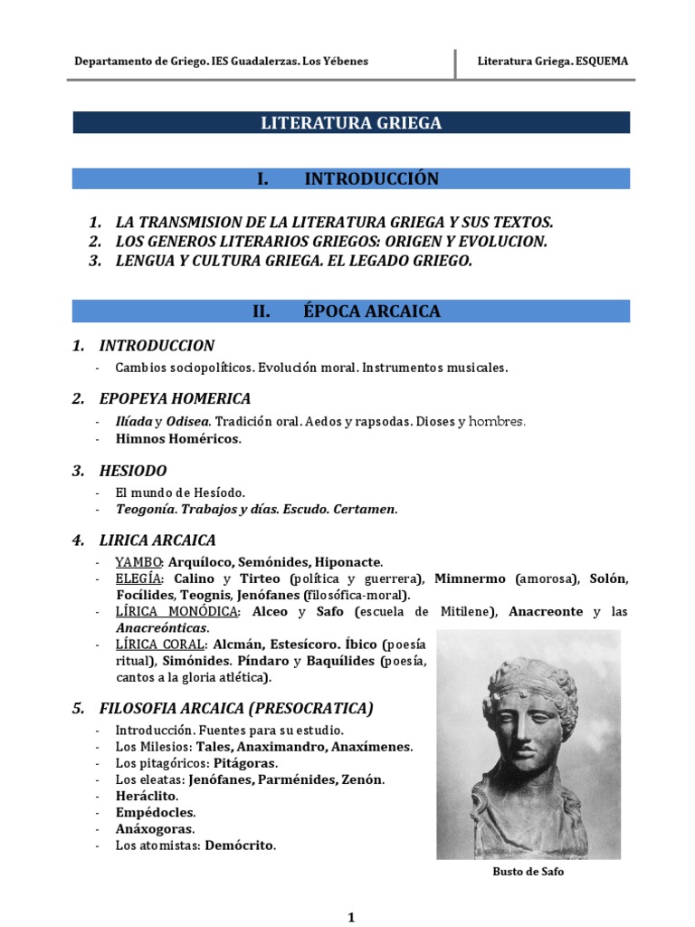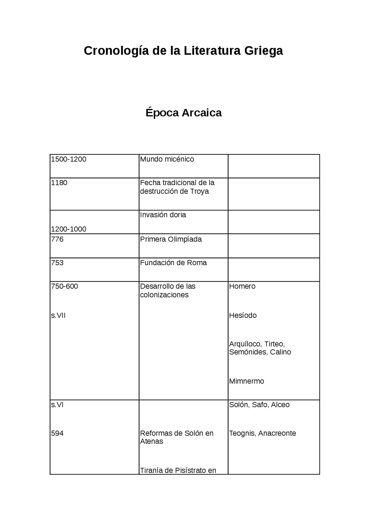 1. Valoración. cronologia literatura romana y griega. 12. Valoraciones. Cronología de la épica y lírica griega y romana. 6. Valoraciones. Época Arcaica de la Literatura Griega - Historia de la Literatura Griega - Apuntes.