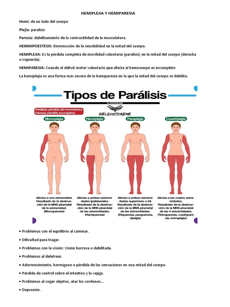 Hemiplejia y Hemiparesia PDF Medicina CLINICA Especialidades Medicas