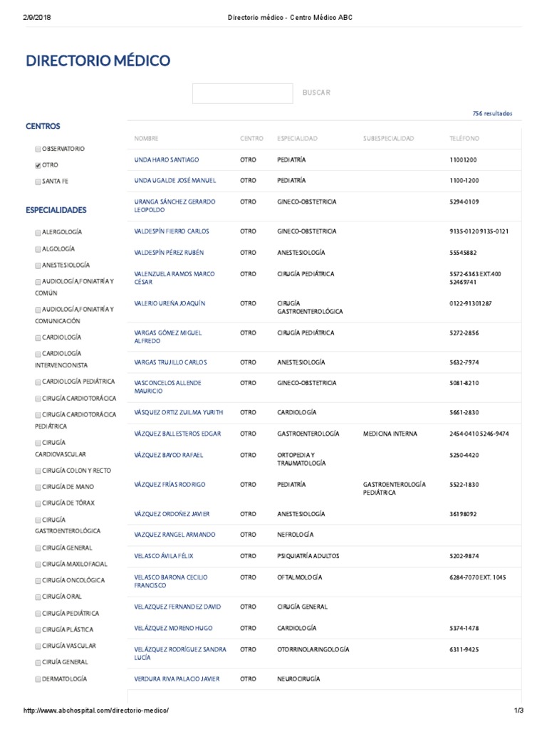 Directorio Médico Centro Médico ABC PDF Medicina CLINICA Especialidades Medicas