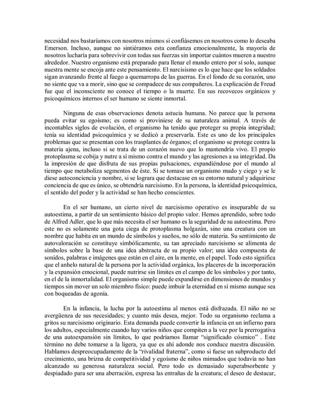 En el fondo de su corazón, uno no siente que va a mo rir, sino que se compadece de sus compañeros. La explica ción de Freud fue que el inconsciente no conoce el tiempo o la muerte. En sus recovecos orgánicos y psicoquímicos in ternos el ser humano se siente inmortal.