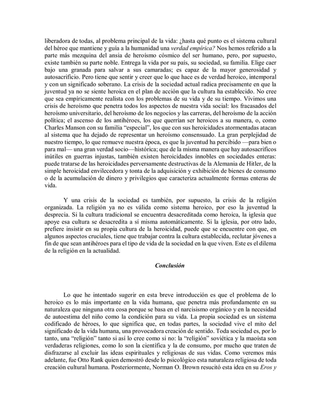 13,171 ratings1,414 reviews. La negación de la muerte es la culminación de una vida de trabajo, y una brillante y apasionada respuesta al "por qué" de la existencia humana. En fuerte contraste con la predominante escuela freudiana de pensamiento, Becker aborda el problema de la mentira vital: el rechazo del hombre a admitir su propia.