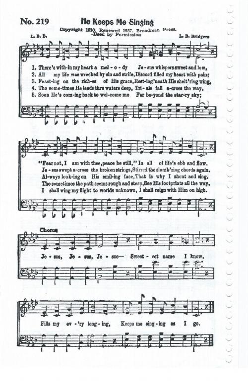 Baptist Hymnal, Christian Song He Keeps Me Singing lyrics with PDF for printing