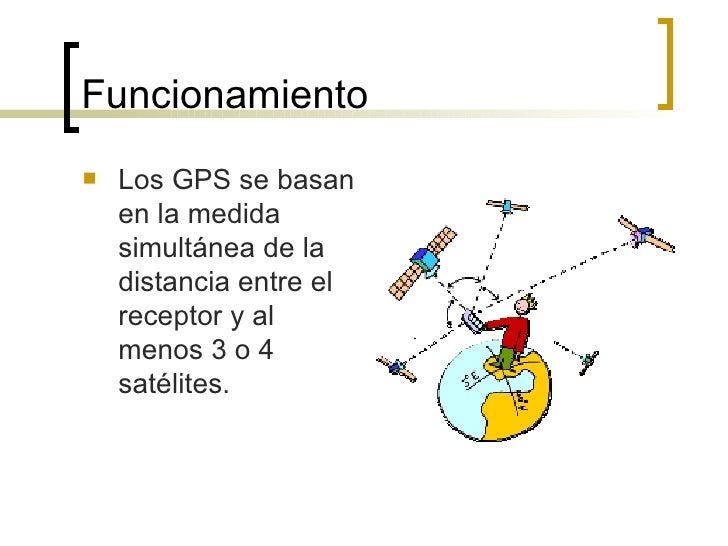 El Sistema de Posicionamiento Global consta de tres partes: Receptores GPS propiedad de particulares. Un conjunto de 24 satélites orbitando la Tierra cada 12 horas transmitiendo su posición y hora. Un receptor terrestre escucha las señales de cuatro o más satélites, comparando las transmisiones de tiempo de cada uno con su propio reloj.
