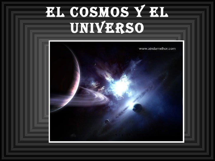 El Cosmos y el Universo. Cosmos: Es un sistema ordenado o armonioso. Se origina del termino griego "κόσμος", que significa orden u ornamentos, y es la antítesis del caos. Hoy la palabra se suele utilizar como sinónimo de universo (considerando el orden que éste posee). Universo: El universo es la totalidad del espacio y del tiempo, de.
