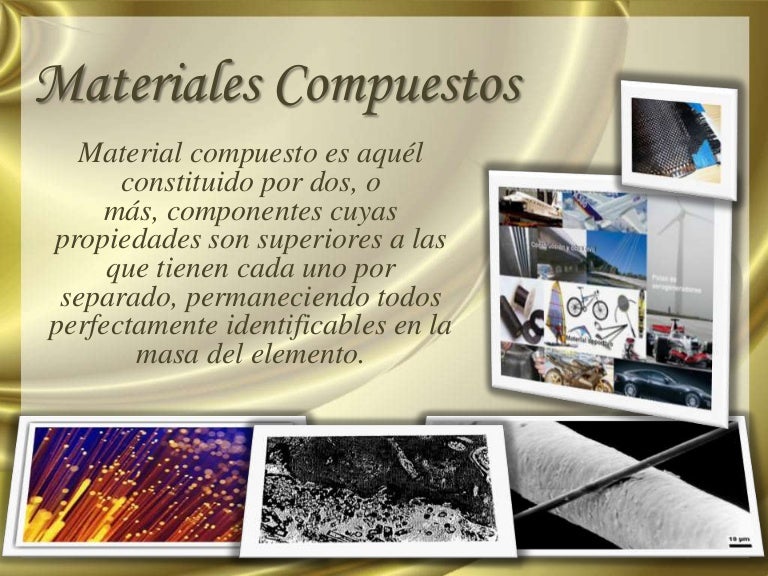 Los materiales compuestos son la combinación de dos o más componentes cuyo objetivo es obtener propiedades de los materiales que sean superiores a las que posee cada constituyente por sí solo. Se pueden elegir estos constituyentes para formar compuestos y obtener propiedades como rigidez, resistencia, mejorar cuestiones de peso, capacidad de.